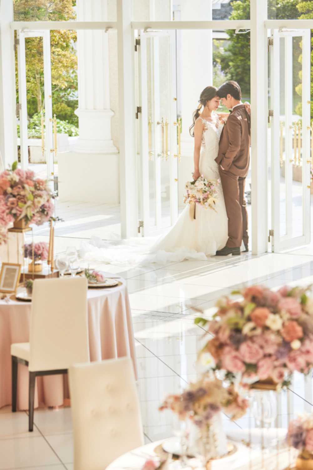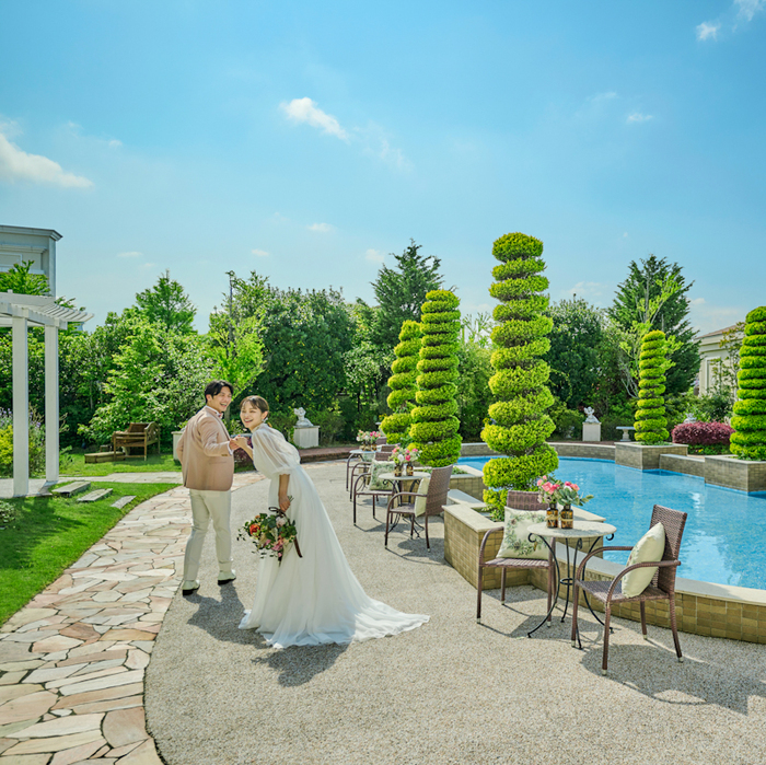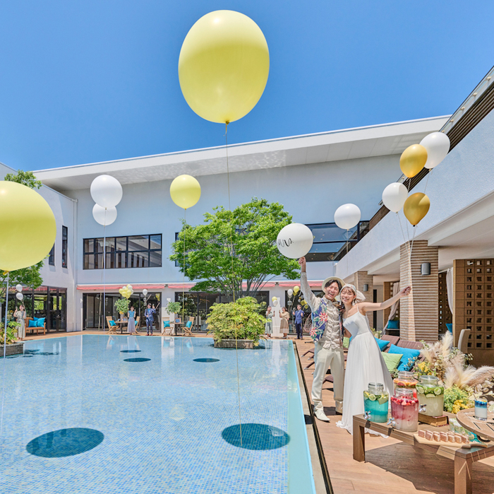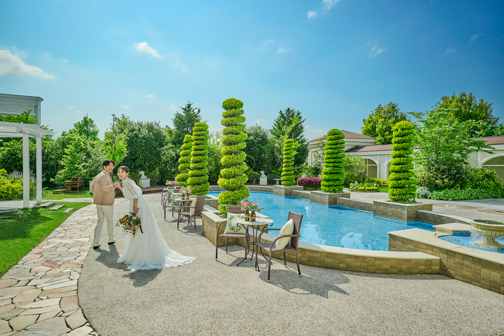 パーティ会場を挟んで、両サイドに広がるダブルガーデン、光に揺れる水面の美しいウォーターテラスが、ハイクラスなリゾートウェディングをより一層印象深いものにしてくれることでしょう。